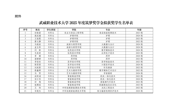 武威職業(yè)技術(shù)大學關(guān)于2025年度筑夢獎學金評選結(jié)果的公示