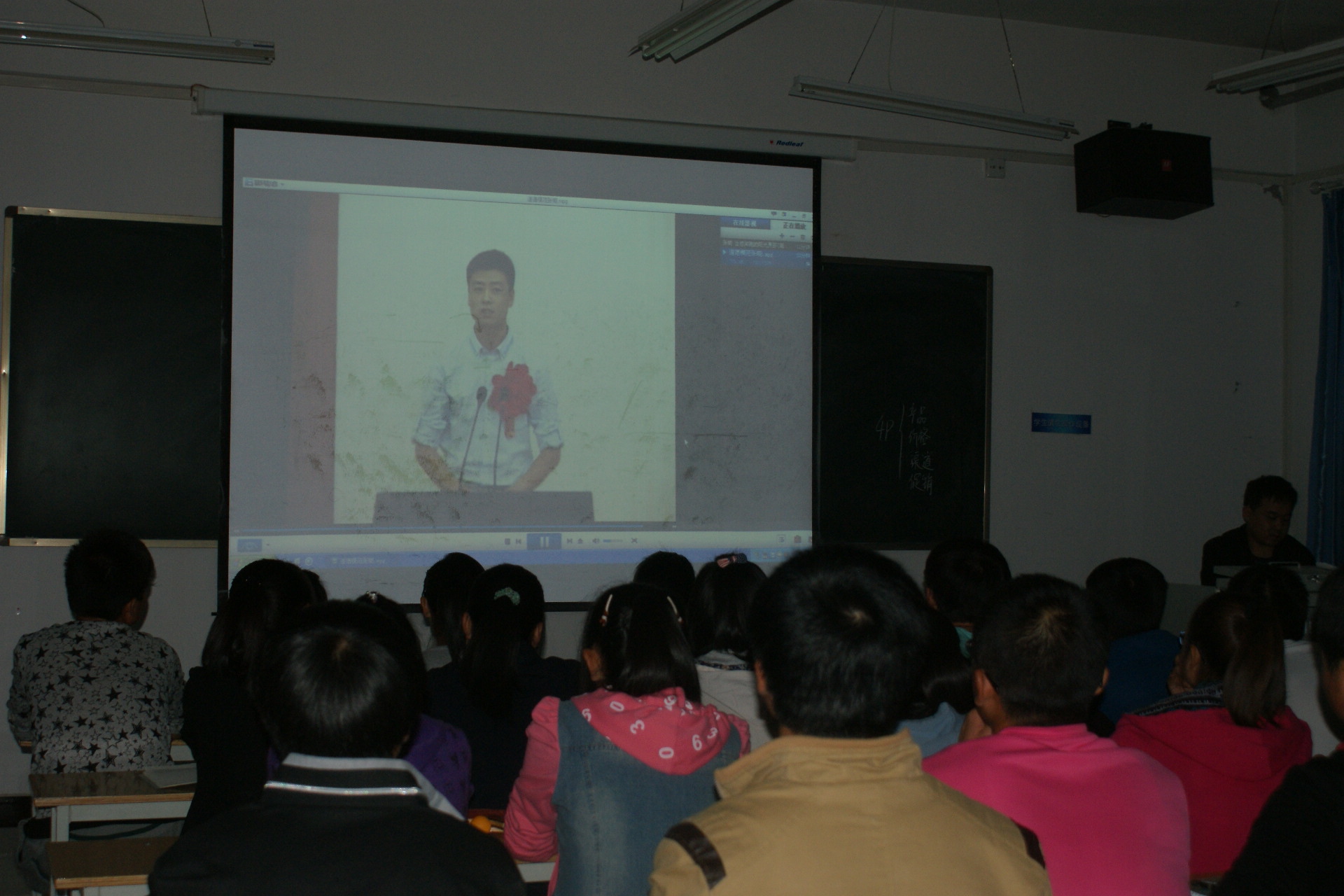 張曉4歲喪父,母親重病臥床。他自小挑起家庭重?fù)?dān),克服常人難以想象的困難,精心侍奉癱瘓?jiān)诖驳哪赣H,并以頑強(qiáng)的毅力完成了小學(xué)到大學(xué)的全部學(xué)業(yè),用自己的行動(dòng)實(shí)踐著"百善孝為先"的傳統(tǒng)美德,在2007年被評(píng)為全國(guó)道德模范?;顒?dòng)中每個(gè)多媒體教室內(nèi)鴉雀無聲,大家認(rèn)真觀看視頻,感受著來自模范的偉大力量,感受著屏幕上這個(gè)青年艱難而勵(lì)志的成長(zhǎng)之路。