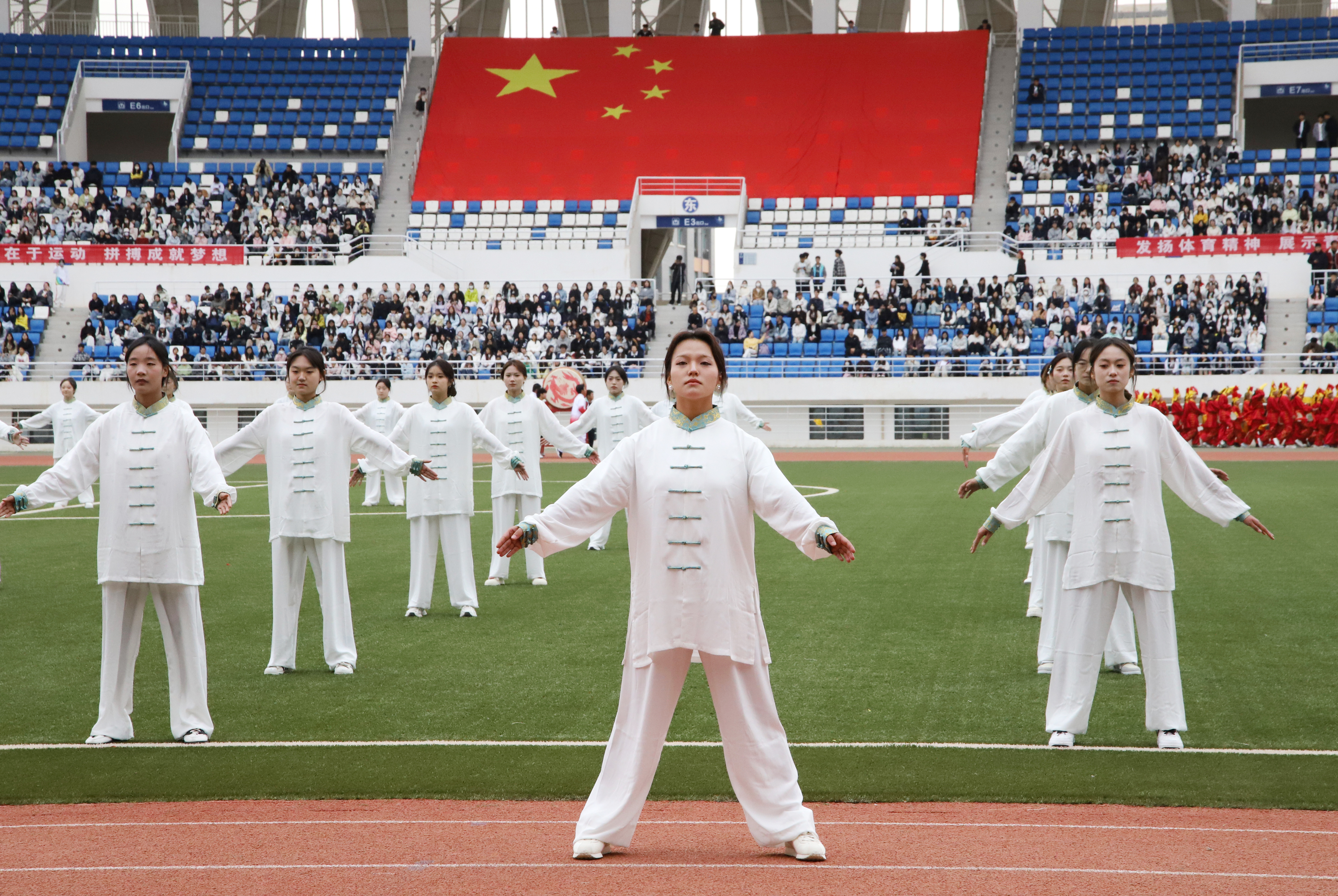 體育教學(xué)成果展示將開(kāi)幕式氣氛推向高潮。國(guó)家級(jí)非物質(zhì)文化遺產(chǎn)涼州攻鼓子,鼓聲鏗鏘有力,動(dòng)作整齊劃一,將傳統(tǒng)文化的厚重與激情展現(xiàn)得淋漓盡致;八段錦表演動(dòng)作舒展柔和,一招一式如行云流水,盡顯中華傳統(tǒng)養(yǎng)生文化的優(yōu)雅與寧?kù)o;韻律操步伐輕盈、動(dòng)作有力,展現(xiàn)了武職大學(xué)子陽(yáng)光向上、朝氣蓬勃的精神面貌。最后,藝術(shù)與教育學(xué)院老師們獻(xiàn)上男女四重唱《美麗中國(guó)》,悠揚(yáng)歌聲里滿含對(duì)祖國(guó)的贊美,引發(fā)全場(chǎng)共鳴。