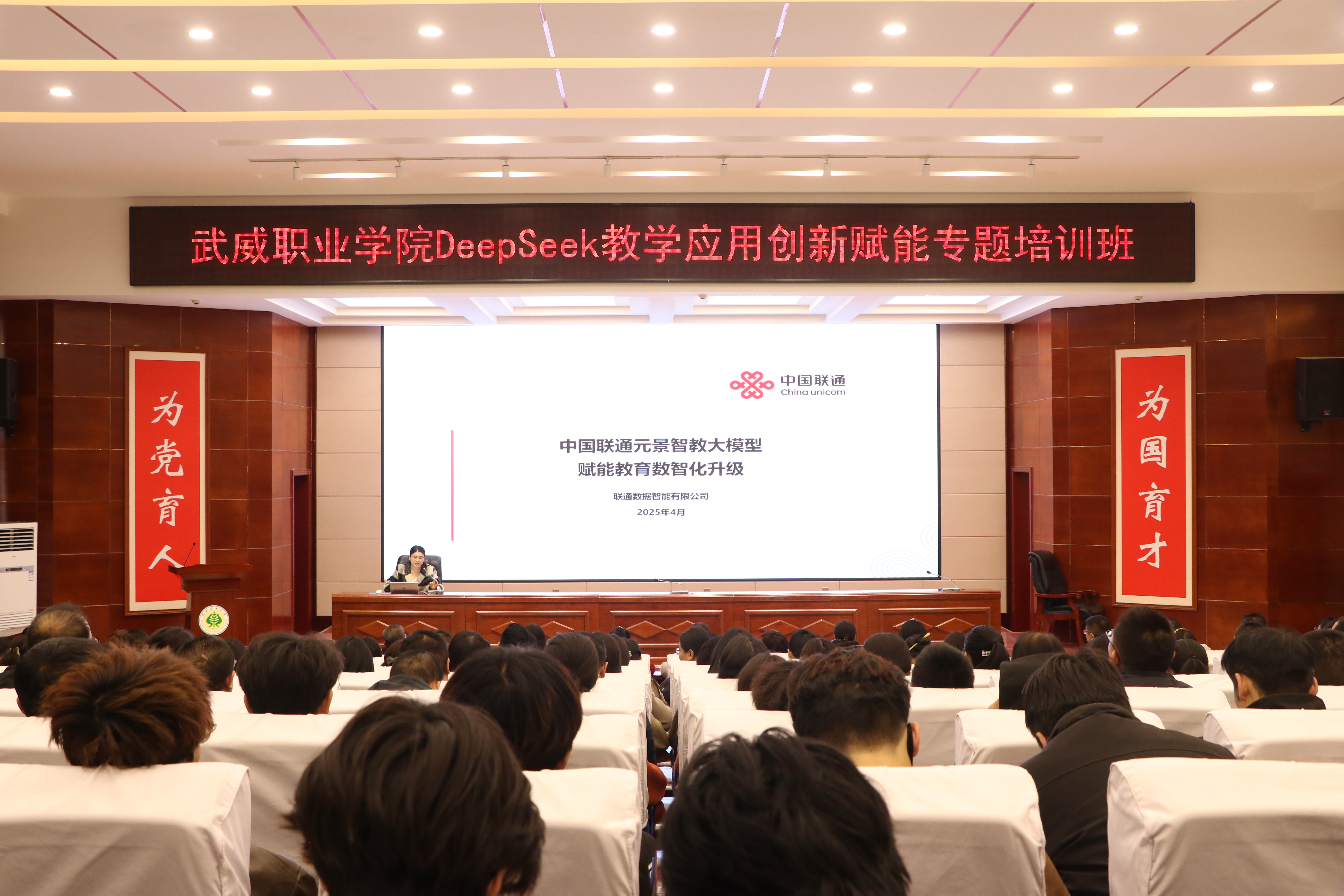 為深入探討DeepSeek技術(shù)的應(yīng)用,助力學(xué)校師生運(yùn)用AI工具進(jìn)行教學(xué)實(shí)踐、智慧課程建設(shè)與科學(xué)研究工作,為教學(xué)改革與教學(xué)創(chuàng)新實(shí)踐筑基賦能。4月3日,學(xué)校邀請(qǐng)聯(lián)通數(shù)據(jù)智能有限公司教育行業(yè)解決方案專家包紅梅和華為技術(shù)有限公司智算產(chǎn)業(yè)AI架構(gòu)師王鑫,舉辦了“DeepSeek教學(xué)應(yīng)用創(chuàng)新賦能”專題講座。講座由網(wǎng)絡(luò)安全與信息技術(shù)中心負(fù)責(zé)人史子新主持,學(xué)校各部門、二級(jí)學(xué)院教師代表,信息技術(shù)學(xué)院學(xué)生代表共計(jì)220人參加。