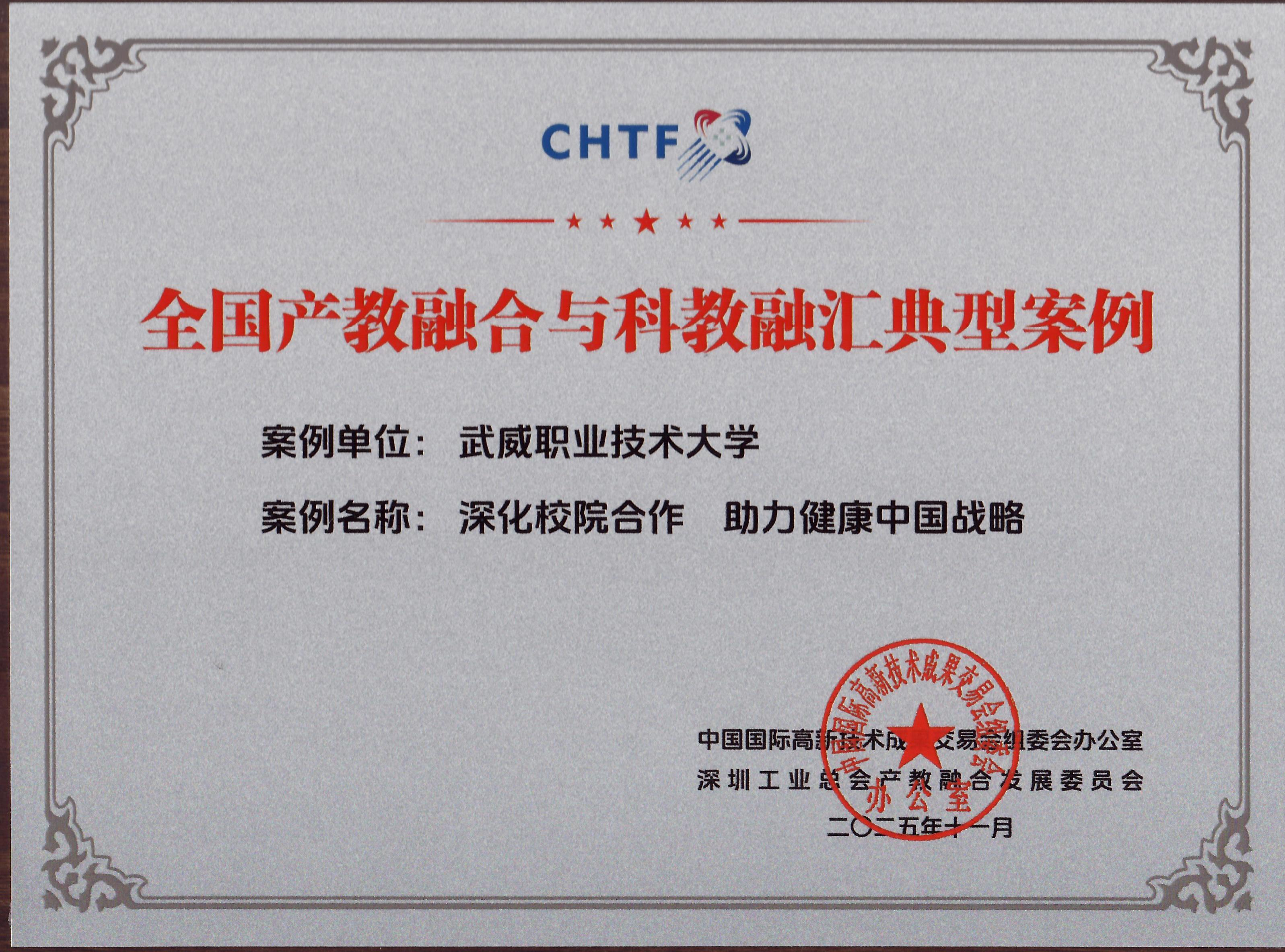 近日,第二十七屆中國國際高新技術(shù)成果交易會組委會公布產(chǎn)教融合與科教融匯典型案例評選結(jié)果,我校報送的《深化校院合作 助力健康中國戰(zhàn)略——武威職業(yè)技術(shù)大學(xué)與甘肅省武威腫瘤醫(yī)院開展校院合作新實踐》成功入選《全國產(chǎn)教融合與科教融匯典型案例匯編》,標(biāo)志著我校在實施科教融匯行動,推動健康人才培養(yǎng)實踐獲得國家級平臺認(rèn)可。