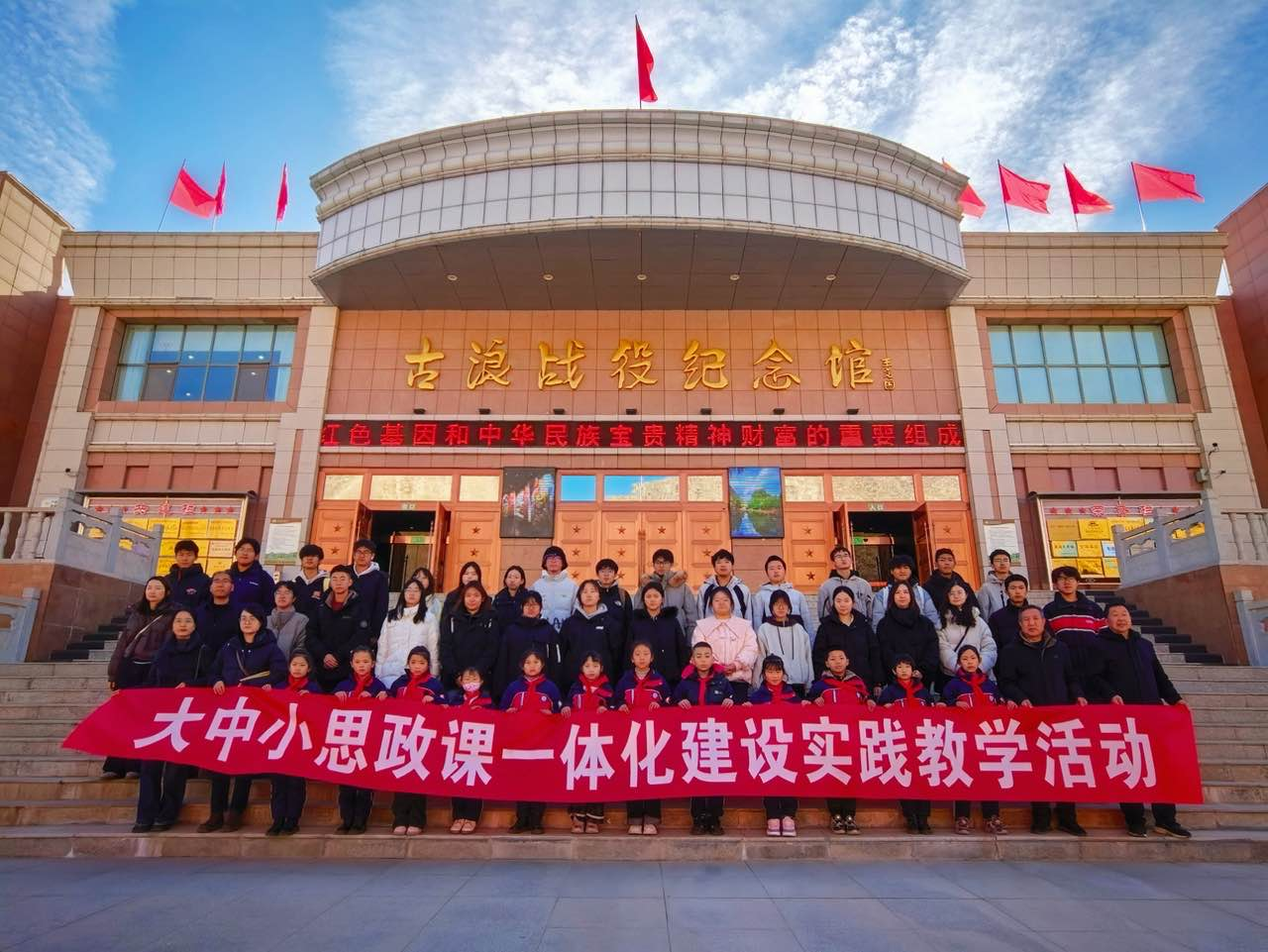 校園參觀結(jié)束,雙方共同前往學(xué)?!按笏颊n”實踐教學(xué)基地---古浪戰(zhàn)役紀(jì)念館,開展了一場生動而深刻的“大思政課”實踐教學(xué)活動。在莊嚴(yán)肅穆的紀(jì)念館內(nèi),全體人員通過觀看歷史文物、聆聽現(xiàn)場講解、緬懷革命先烈,深刻感悟了紅色江山的來之不易,接受了偉大的革命精神洗禮。