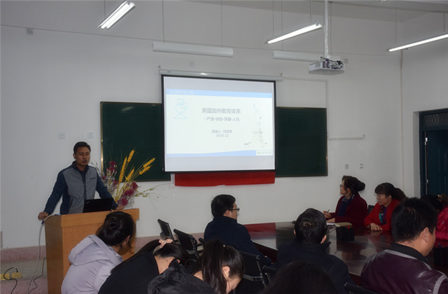 晏素珍就2016年我系教師培訓(xùn)工作做了簡單回顧與總結(jié),隨后蔡飛從美國文化入手,介紹了他們在美國加利福尼亞州社區(qū)學(xué)院學(xué)習(xí)的基本情況,分享了實(shí)踐教育教學(xué)的信息、理念、方法、感受。龔建軍從美國教育體系著手,分享了他在美國加利福尼亞州社區(qū)學(xué)院參加的“了解美國現(xiàn)代教育教學(xué)理念,全面提高骨干教師專業(yè)建設(shè)與實(shí)踐能力”培訓(xùn)中的所學(xué)所聞,重點(diǎn)介紹了美國職業(yè)教育體系和職業(yè)教育教學(xué)及學(xué)習(xí)模式。