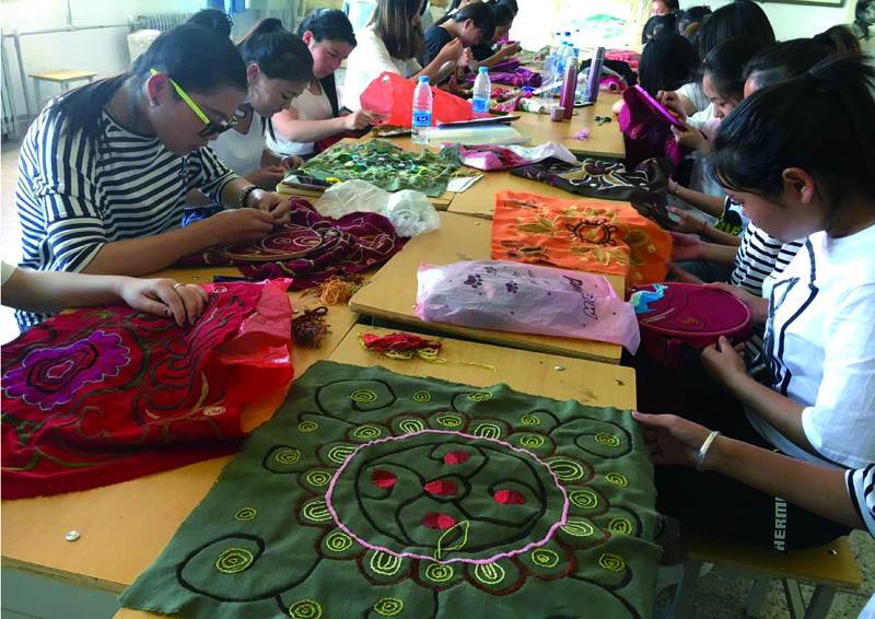 恰逢“一帶一路”偉大戰(zhàn)略構(gòu)想開(kāi)展之際,近日,為迎接“第二屆敦煌絲綢之路國(guó)際文化博覽會(huì)”的勝利召開(kāi),人文藝術(shù)教育系組織學(xué)前教育專業(yè)師生積極研發(fā)創(chuàng)意旅游作品,參加由省婦聯(lián)、省教育廳、省高校工委組織的“第一屆女大學(xué)生巧手創(chuàng)意大賽”。學(xué)院人文藝術(shù)教育系利用武威地處絲綢之路經(jīng)濟(jì)帶“咽喉”的區(qū)位優(yōu)勢(shì),挖掘古絲綢之路文化,激發(fā)學(xué)生創(chuàng)新創(chuàng)業(yè)能力,以精美的敦煌壁畫(huà)藻井圖案為造型元素,用刺繡的手法設(shè)計(jì)制作裝飾、實(shí)用效果極佳的抱枕等紡織作品,作品傳承了古絲綢之路文化,承載著廣大師生對(duì)敦煌藝術(shù)的向往和追求。參賽作品展現(xiàn)了人文藝術(shù)教育系學(xué)生的精美刺繡工藝和獨(dú)特的創(chuàng)意手法,體現(xiàn)了人文藝術(shù)教育系特色教學(xué)成果。據(jù)悉,參賽優(yōu)秀作品將在“第二屆敦煌絲綢之路國(guó)際文化博覽會(huì)”上展出。